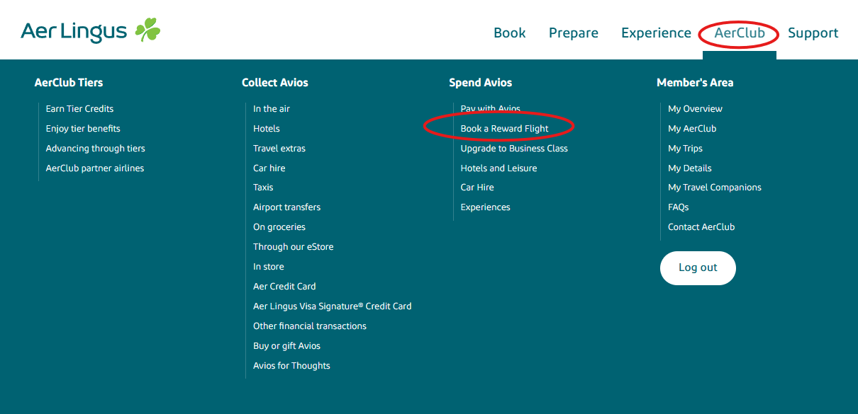 2) You can click here to visit the Aer Lingus Avios reward site, or you can get there from the Aer Lingus site. On the homepage, hover over “AerClub” and choose “Book a Reward Flight”. Then you will have to click an option that says “Buy a Reward Flight” that will redirect you to another Aer Lingus site that lets you use Avios.