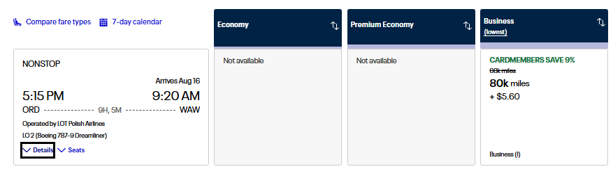 4) Confirm the flight details including if the number of seats you need is bookable, aircraft type, and timing. Then book with your preferred program.