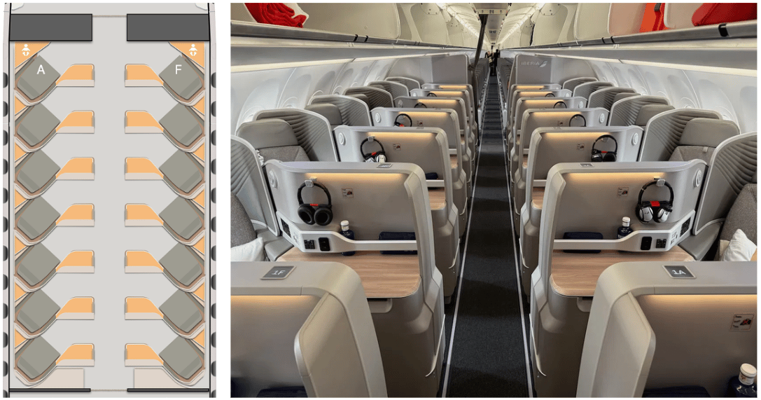 Iberia is using its new A321XLR on the Toronto-Madrid route. This is a narrowbody plane in a 1-1 layout. All business class seats are lie-flat.
