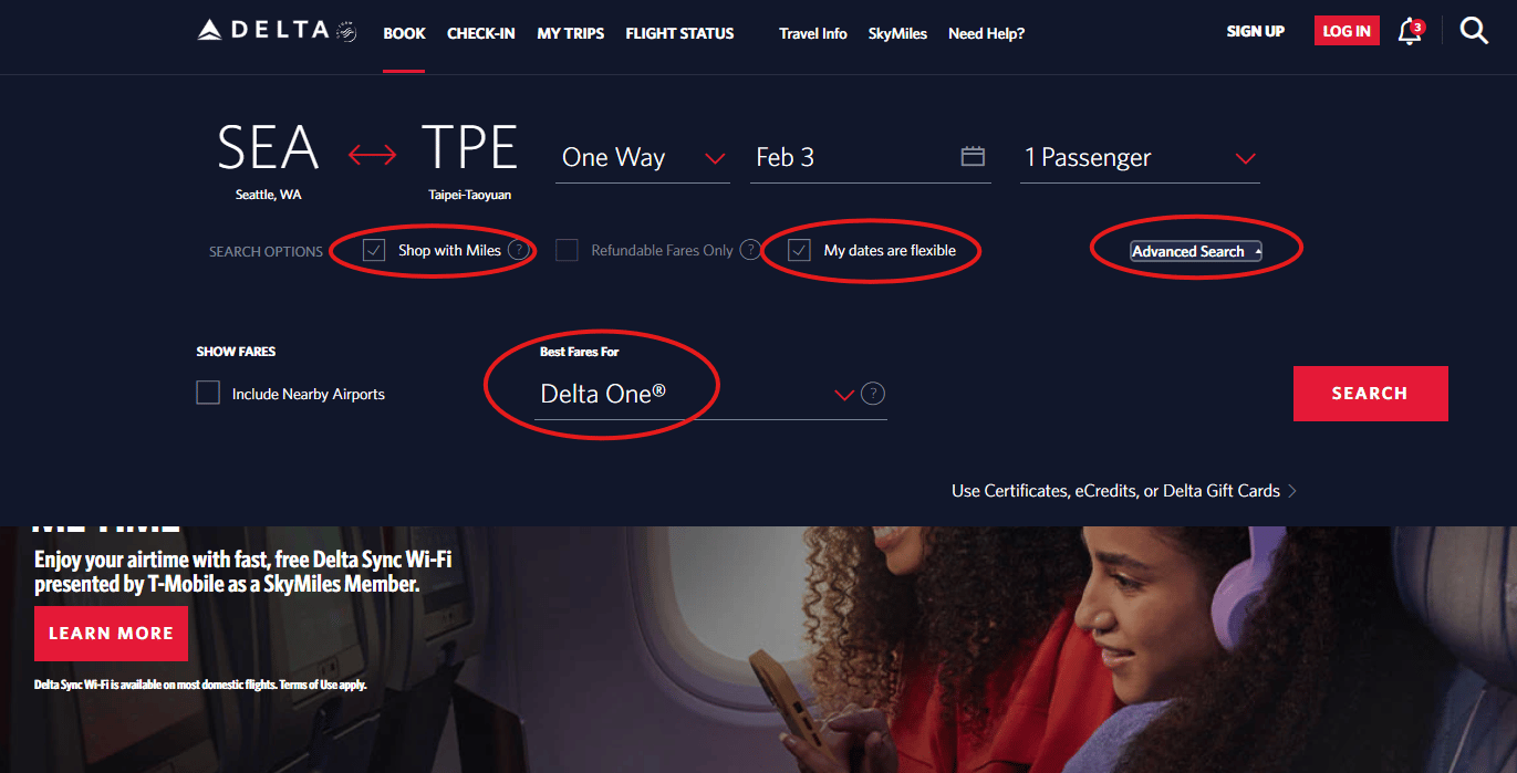 1) Search and book directly on Delta’s website.