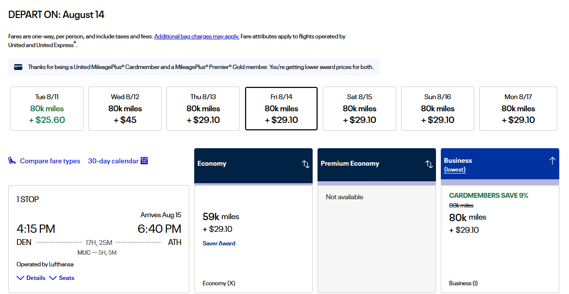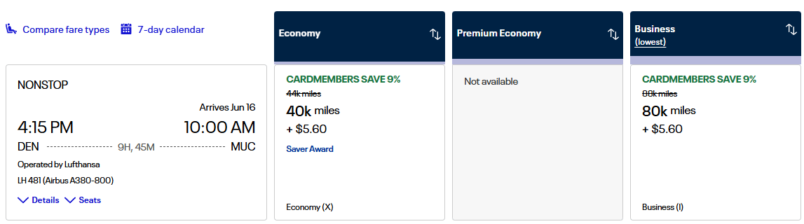 Why I like this deal: 1) Multiple seats (some dates 9+), 2) availability during peak dates, including summer season, and 3) reasonable cost for business class awards.