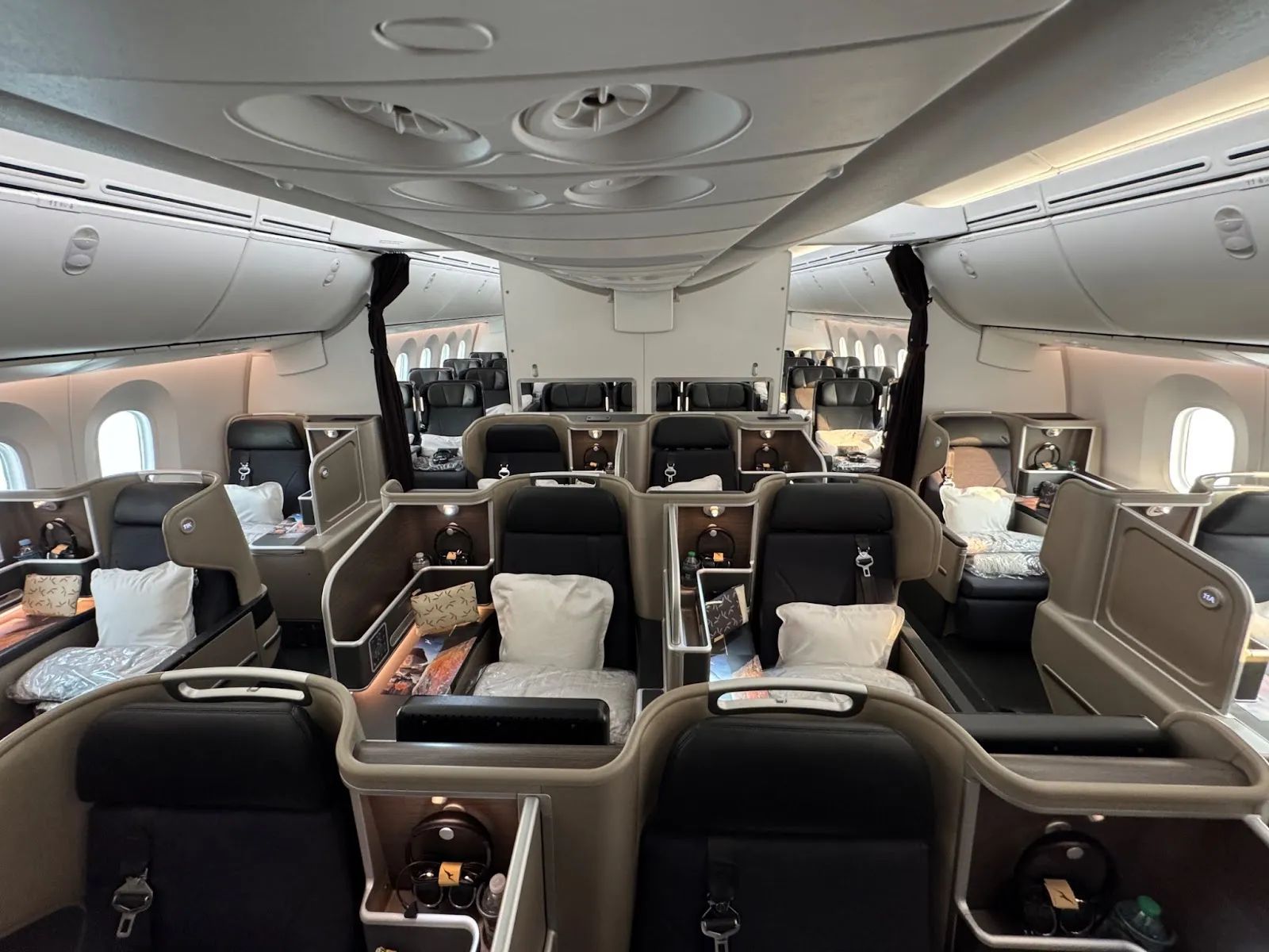 Qantas flies a 787 on this route. 1-2-1 lie flat seats