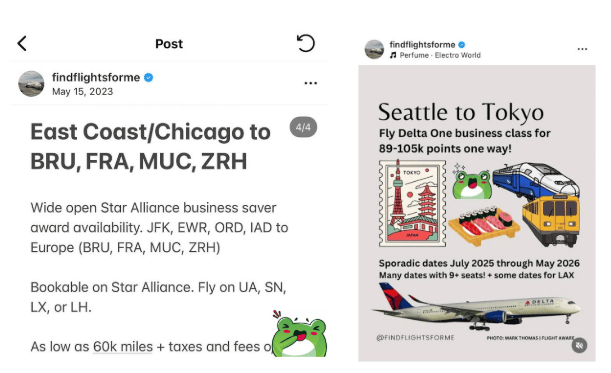 I started the idea of Find Flights for Me back in 2023 to help educate and inspire people to use their credit card points more effectively, with a focus on using points to fly business and first class flights. At the time, there was a lot less transparency around using points and the focus was centered around telling you how to earn points. So, I thought I could share content that is easy-to-understand and actionable on social media - and now with a newsletter.